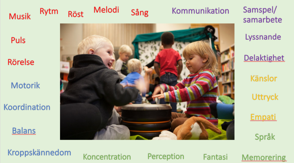 Rytmikmetoden är i grund och botten en musikpedagogik där man tränar puls, rytm, melodi, rörelse, röst, drama, improvisation mm, men genom arbetssättet kan man också nå en utveckling på många andra områden som är viktiga för individen att ha med sig i livet. Dessa förmågor/områden kan vara fysiska, intellektuella, emotionella och sociala.
