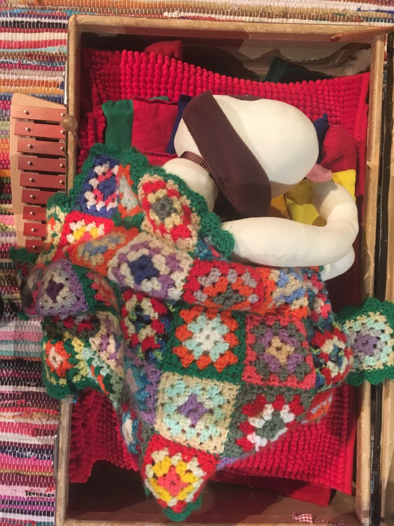 Och så drog hon igång festen med gitarren och kompades genast av handklapp, fotstamp och förtjusta skratt. Många av barnen kände redan till ”Imse, vimse” och de andra klassikerna på repertoaren och kunde utan problem sjunga med.