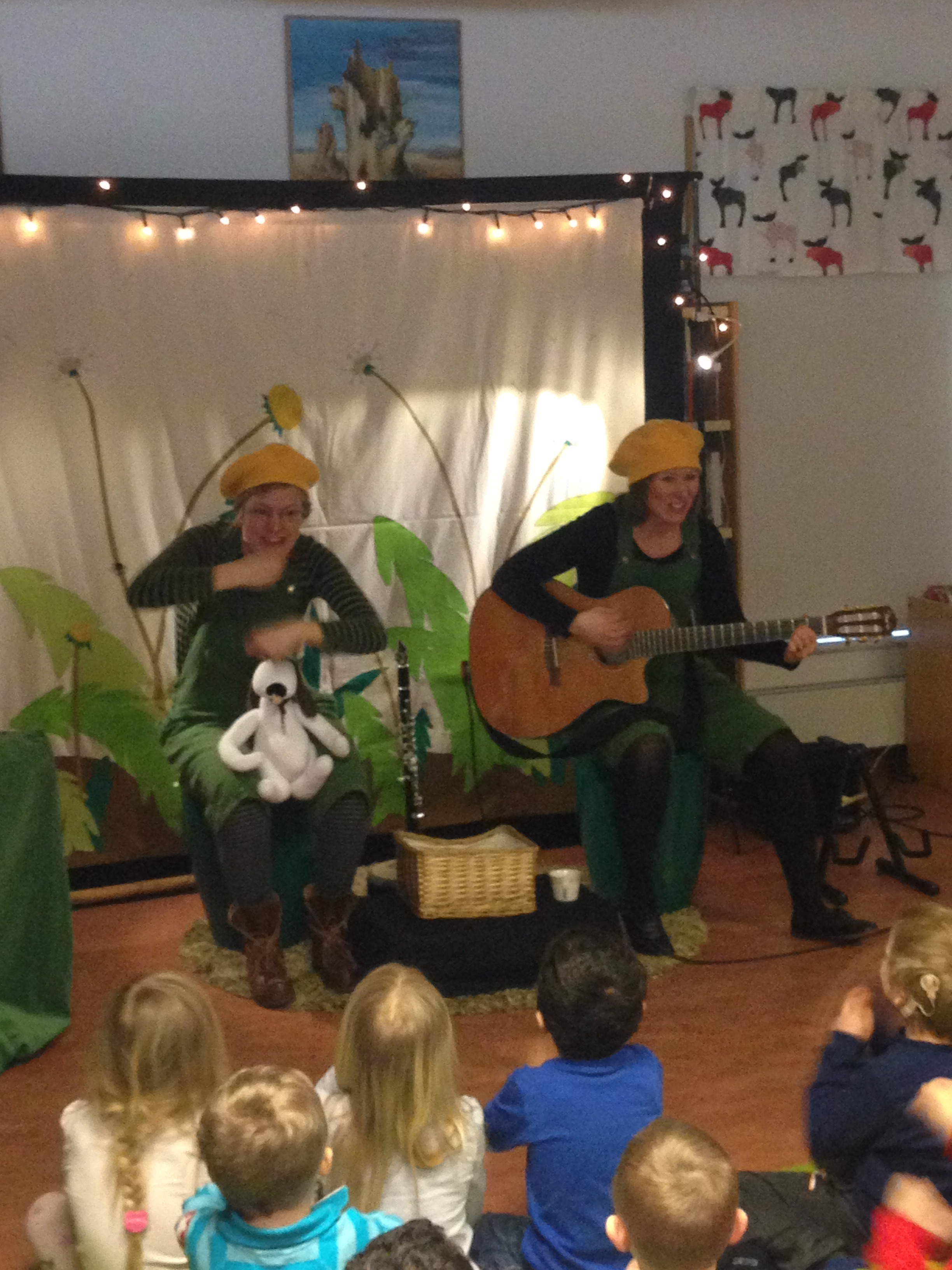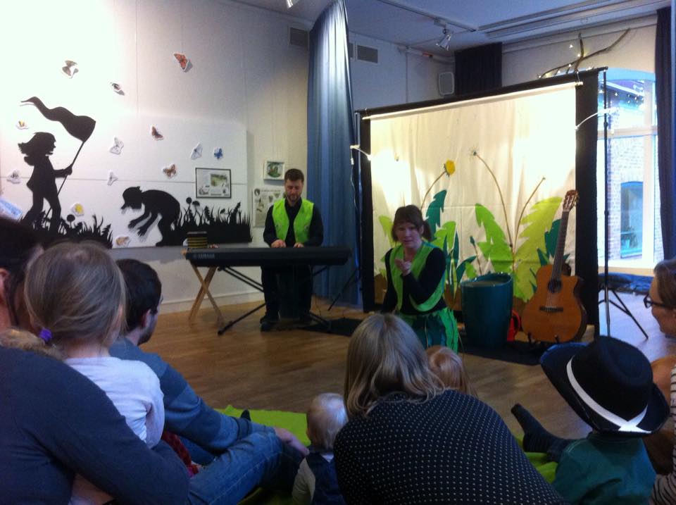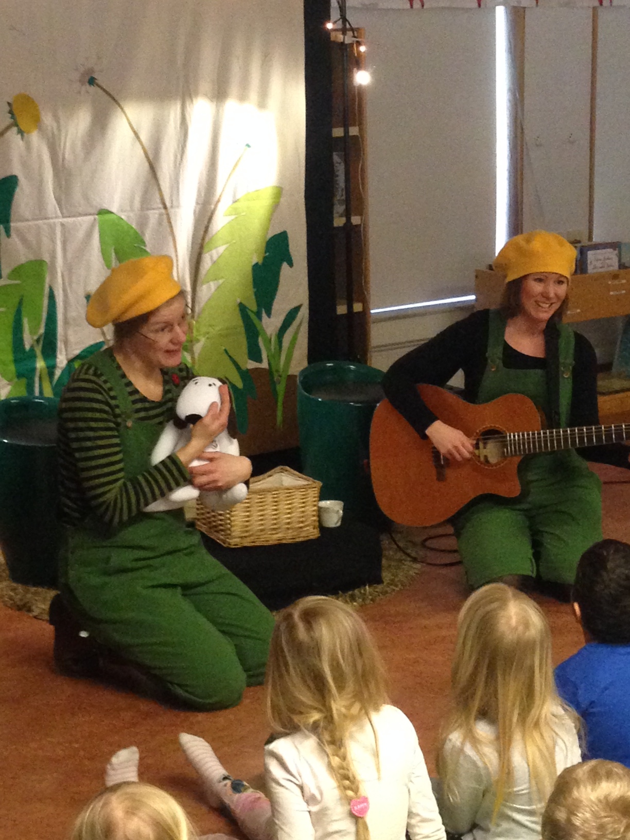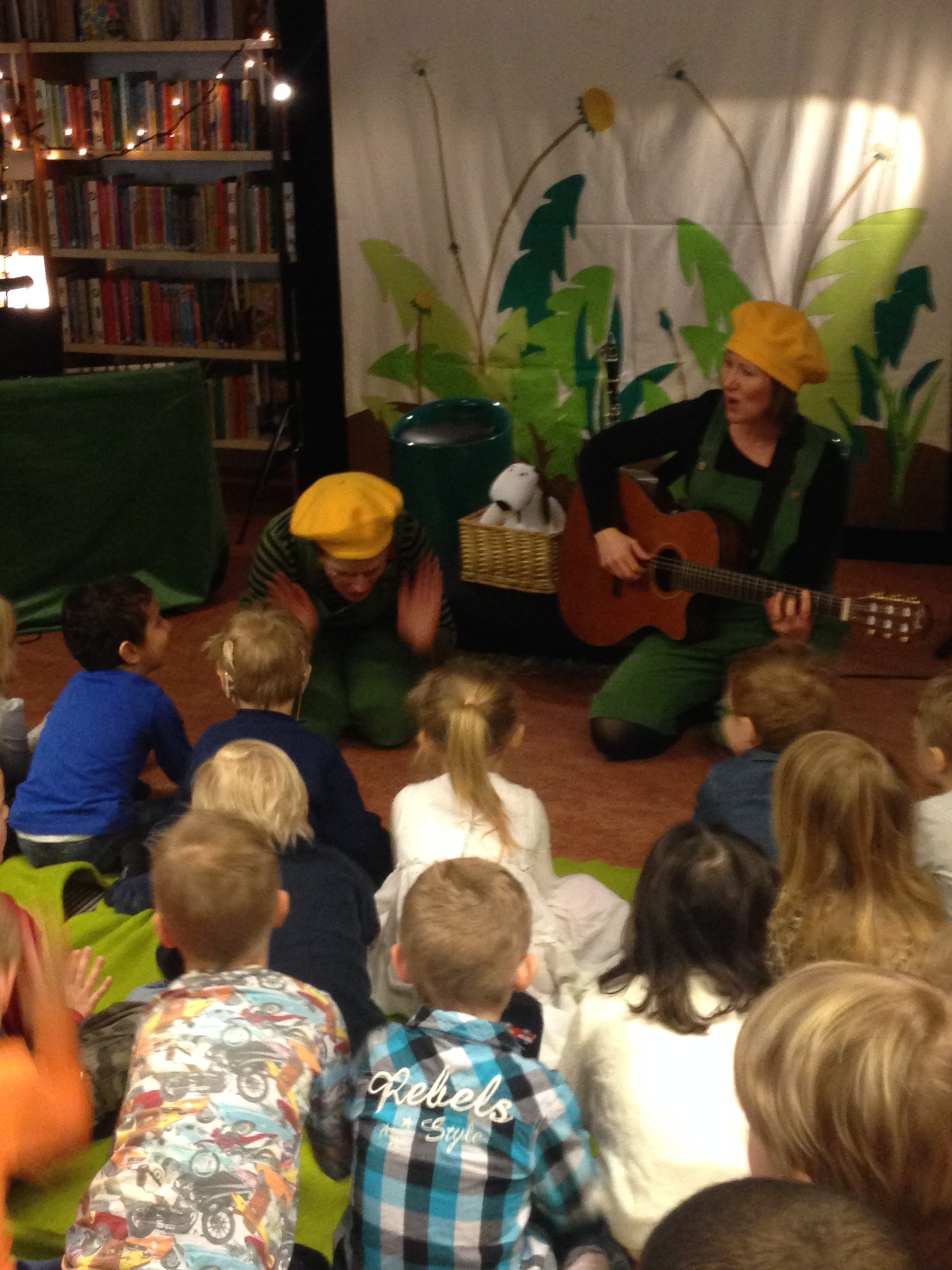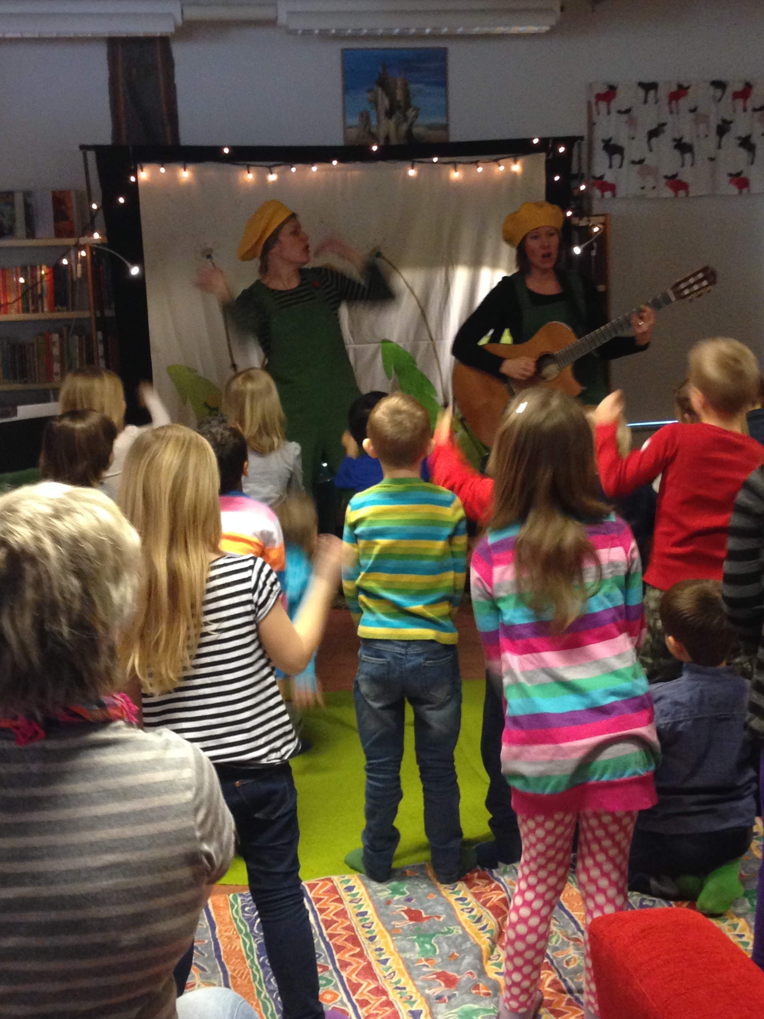 Idag har Sara och jag för första gången gjort hela föreställningen (och inte bara en snutt som på utbudsdagen i Blekinge) vår nya version av Hunden Rund planterar! Först ut var biblioteket i Urshult och sedan biblioteket i Ryd i Småland! Det blev väl mottaget av både stora och små och de två tanterna med gröna hängselbyxor och gula baskrar ser fram emot att få spela med Hunden Rund mycket mer framöver! Voff!