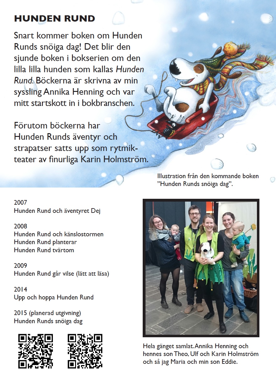 Bästa Maria Nilsson Fidler som ritar Hunden Rund ska ha utställning på biblioteket i Dalby! Missa inte det! Dessutom är det en ny Hunden Rund – bok på väg som vi snart kan se fram emot: Hunden Runds snöiga dag!